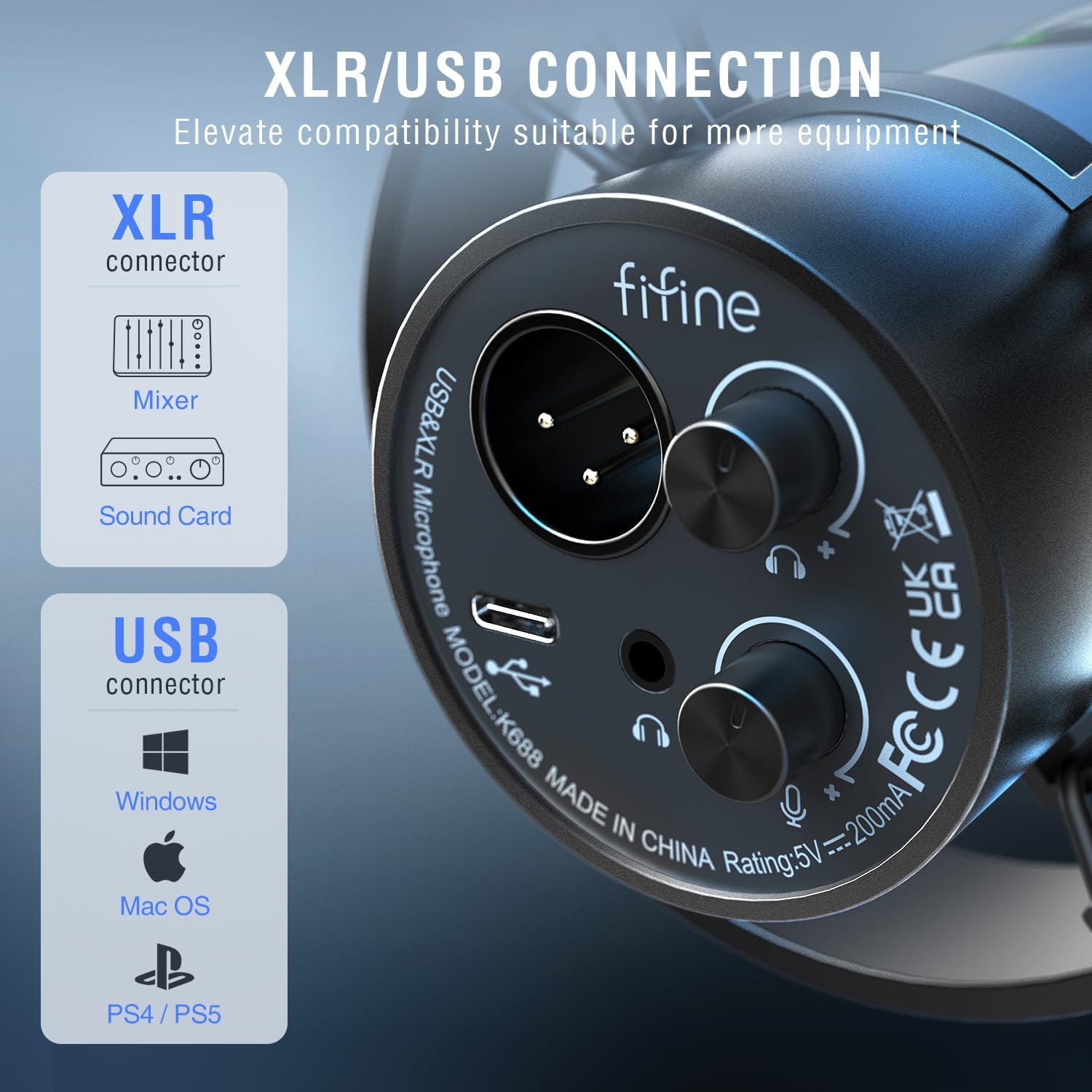 The FIFINE K688T microphone features a high-quality dynamic element that delivers clear and crisp sound reproduction, capturing every nuance of your voice with exceptional clarity. With both XLR and USB connectivity options, this versatile microphone can be easily integrated into your existing setup, ensuring compatibility with a wide range of devices.